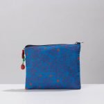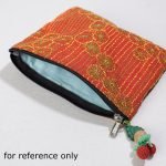 This cosmetic pouch is made from cotton fabric. It is designed with contemporary patterns and hand embroidered using the Uttarakhand traditional craft technique of Kantha Tagai using thread yarns. Useful for general cosmetic or Toiletry products. (has no pockets inside)