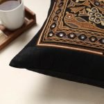 This cushion cover featues Kutch’s Ahir hand embroidery. Made of silk fabric with hand-embroidered mirror work by expert craftswomen in the Kutch region, it has a cotton fabric lining inside. Traditionally, Ahirs have been herders and shepherds. Ahir embroidery is mostly bold and their motifs are geometric shapes, floral patterns, animals and birds. This is one of the most commercialised embroidery styles of Kutch. Customised designs and colors possible for a small batch production of 100 pieces. Product and material testing reports available on request.