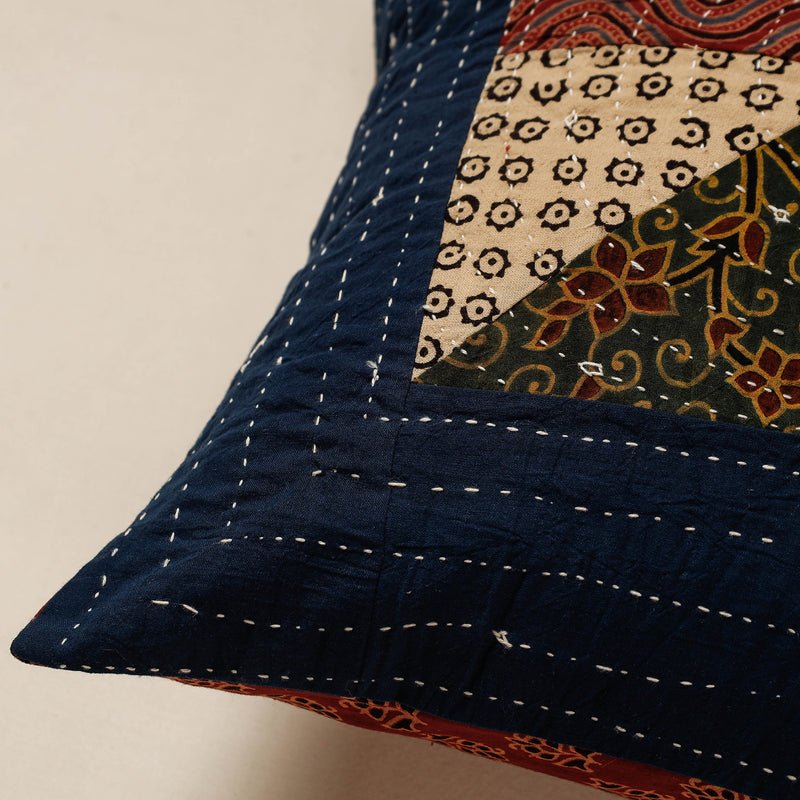 Ajrakh Tagai Patchwork Cotton Cushion Cover (16 x 16 in)