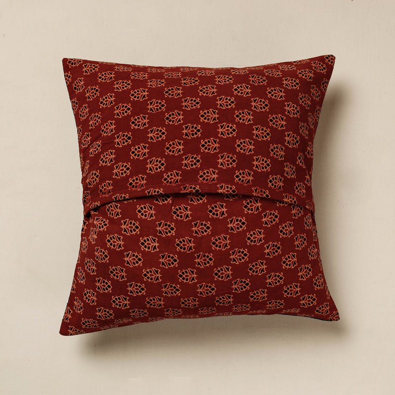 Home All Categories Home Furnishing Cushion Covers Kutch Embroidered Ajrakh Cotton Cushion Cover (16 x 16 in)