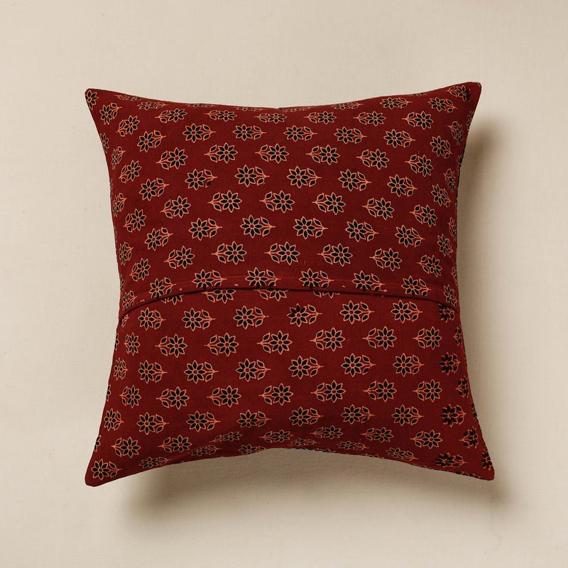 Home All Categories Home Furnishing Cushion Covers Kutch Embroidered Ajrakh Cotton Cushion Cover (16 x 16 in)
