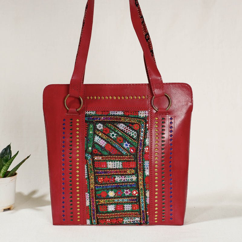 Home All Categories Fashion Accessory Shoulder Bags Kutch Jat Embroidery Leather Shoulder Bag