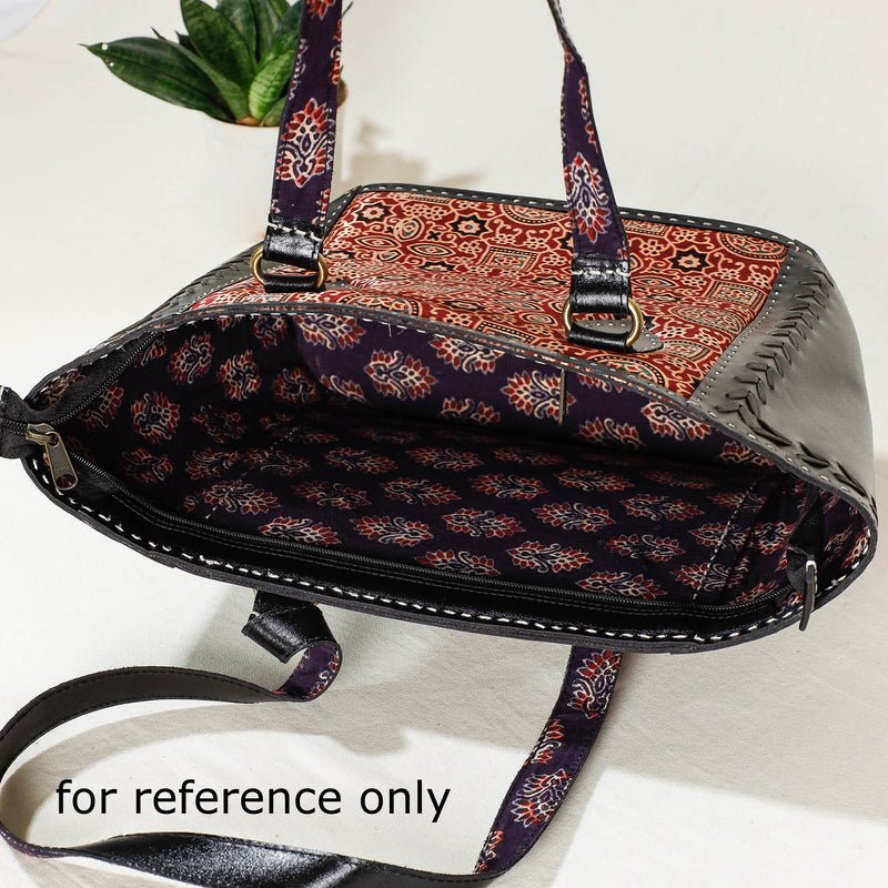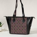 Elevate your style with handcrafted shoulder bag, meticulously crafted from cruelty-free leather and adorned stunning mashru silk fabric. The bag features intricate kutchi mirror work embroidery, adding a touch of traditional charm. With a zipper pocket inside and a cotton fabric lining, this bag offers ample space to keep your essentials organized. Embrace ethical fashion and make a statement with this cruelty-free and beautifully designed shoulder bag.