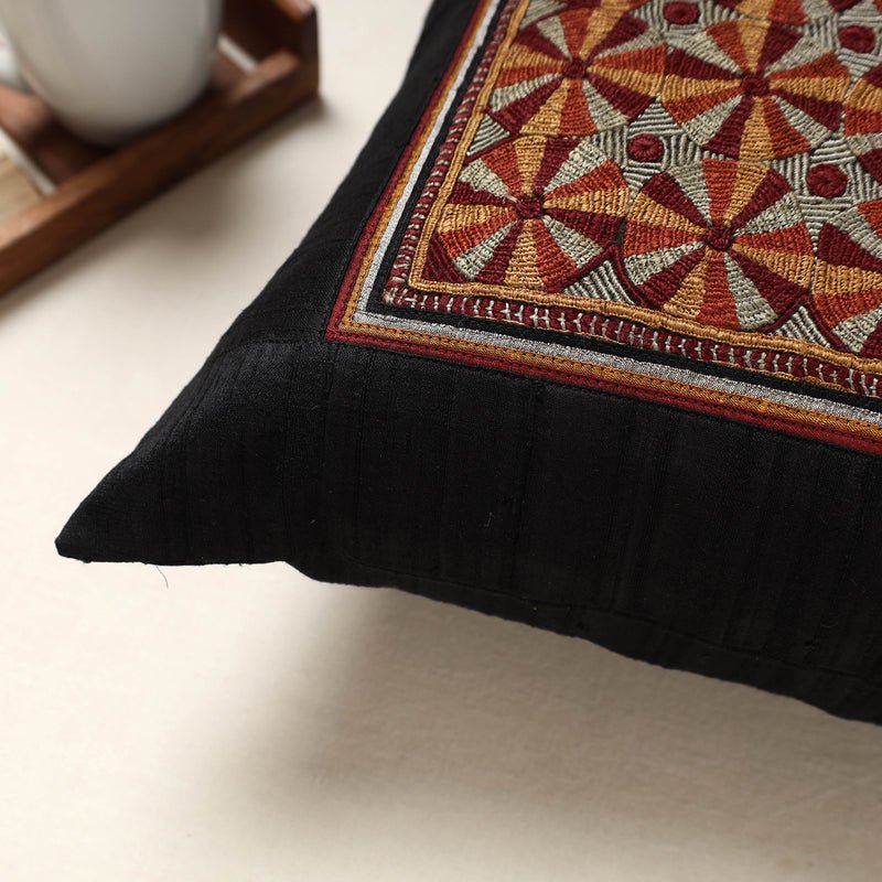 Kutch Jat Hand Embroidery Silk Cushion Cover (16 x 16 in)