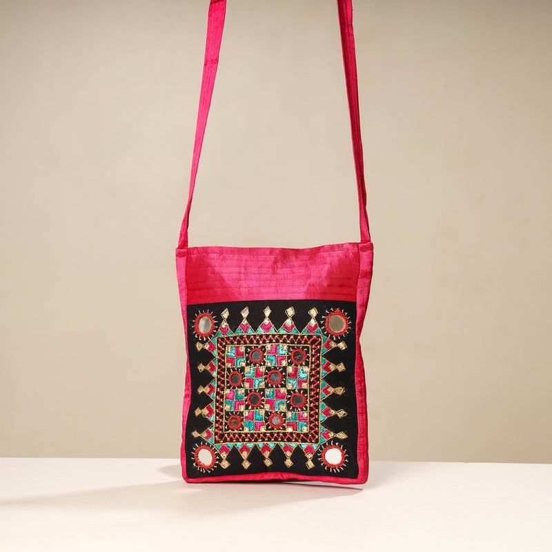 Kutch Abstract Hand Embroidery Mashru Silk Sling Bag