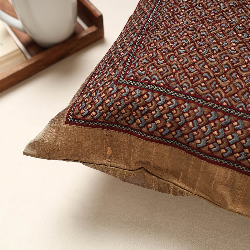 Kutch Ahir Hand Embroidery Silk Cushion Cover (16 x 16 in)