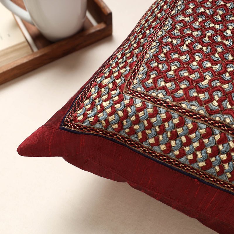 Kutch Neran Hand Embroidery Silk Cushion Cover (16 x 16 in)