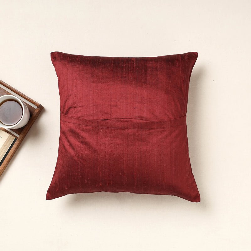 Aari Embroidery Sequin Work Ghicha Silk Cushion Cover (16 x 16 in)