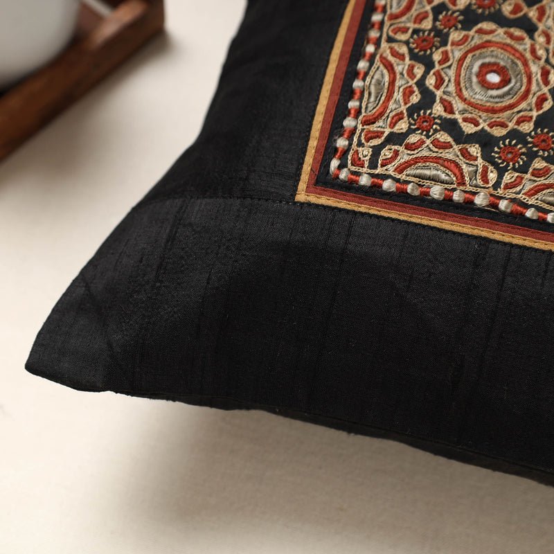 Kutch Ahir Hand Embroidery Silk Cushion Cover (16 x 16 in)