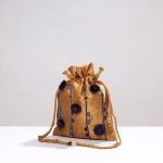 Chikankari Hand Embroidered Tussar Silk Potli Bag