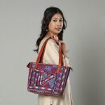 Handcrafted shoulder bag made from cotton fabric and cruelty free leather with intricate kutch rabari embroidery. It has one zipper pocket inside with cotton fabric lining inside. Ample space to keep most of your essentials.