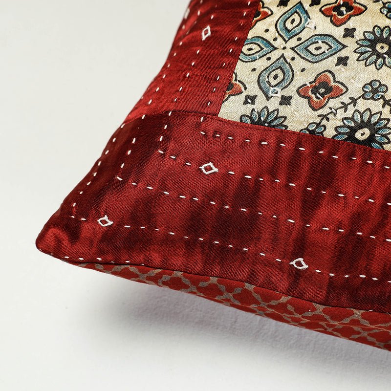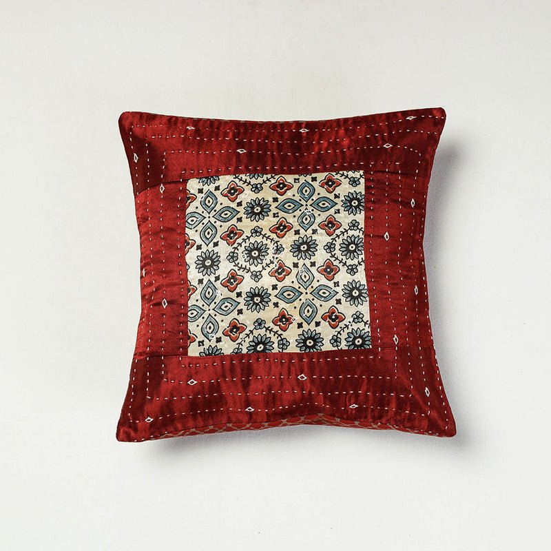 Kutch Tagai Work Ajrakh Mashru Silk Cushion Cover (12 x 12 in)