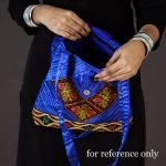 This shoulder bag is made from mashru silk fabric with kutchhi hand embroidered mirror work. Has one zipper pocket on backside and one simple pocket inside. The Kutch Embroidery is a handicraft and textile signature art tradition of the tribal community of kutch district in Gujarat. This embroidery with its rich designs has made a notable contribution to the Indian embroidery traditions. The embroidery, practiced normally by women is generally done on fabrics of cotton, in the form of a net using cotton or silk thread.