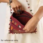 This crossbody shoulder dori bag is handcrafted from cotton fabric and features intricate hand embroidery. It has a cotton fabric lining with one velcro pocket outside and one zipper pocket inside, providing ample space for all your essentials.