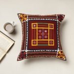 Kutch Jat Hand Embroidery Silk Cushion Cover (16 x 16 in)