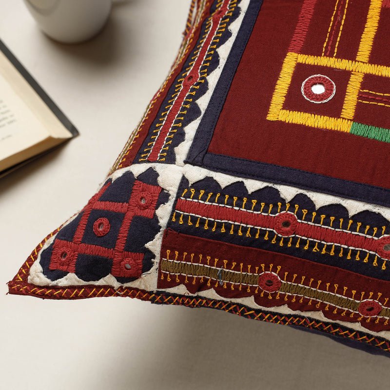 Lambani Mirror & Patchwork Embroidery Cotton Cushion Cover (16 x 16 in)