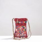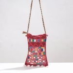 This shoulder dori bag is handcrafted from cotton fabric and adorned with intricate mirror work hand embroidery. It has a cotton fabric lining, providing ample space for all your essentials. The stunning design makes it perfect for any occasion, adding a touch of glamour to your outfit.