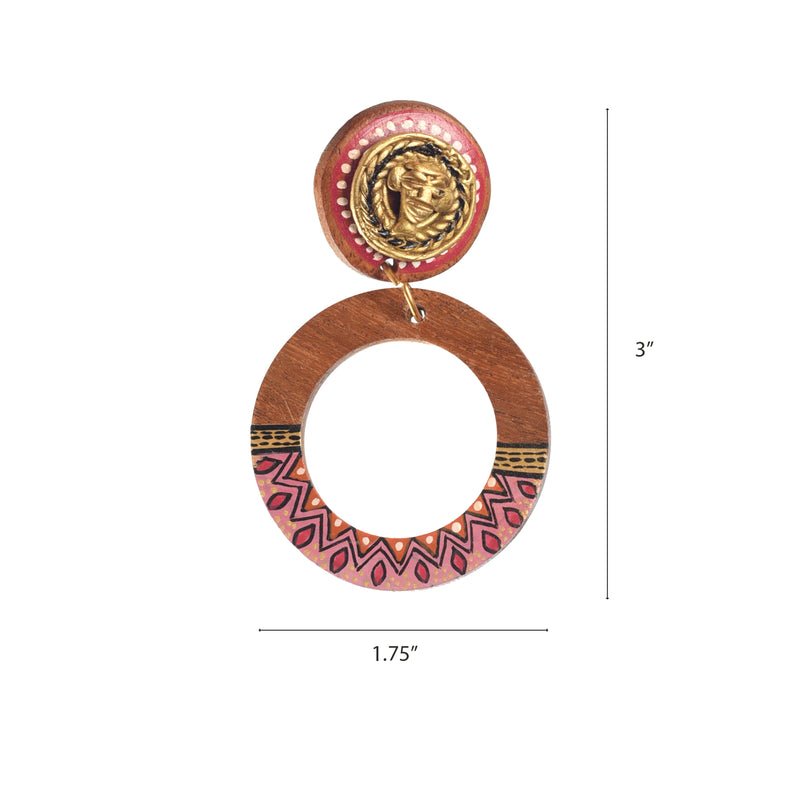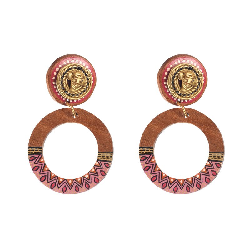 Boho Chic: Handcrafted Wooden Earrings with Brass Motifs