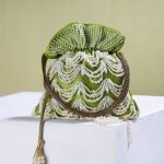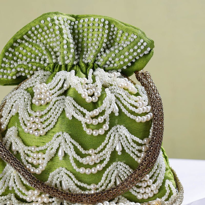 Lime Green Hand Embroidery Beadwork Silk Potli Bag