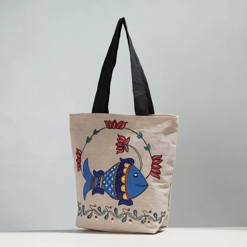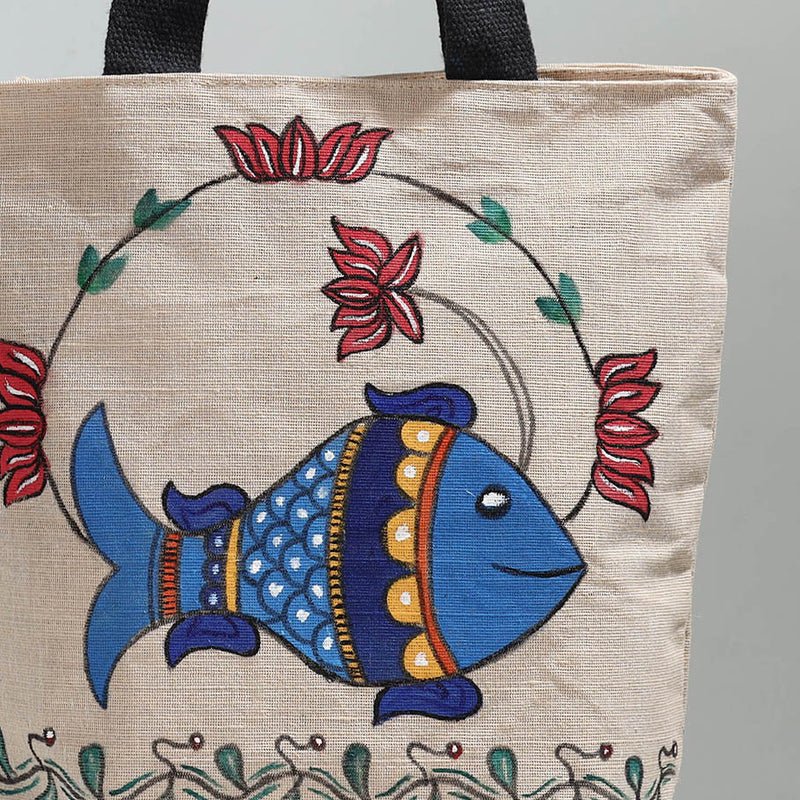Home All Categories Fashion Accessory Shoulder Bags Madhubani Hand-painted Jute Cotton Shoulder Bag