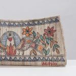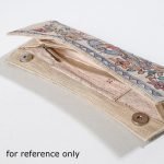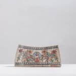 The clutch is handcrafted using natural dyed Ghicha silk. It has one zipper pocket inside. This exquisite clutch is created with handpainted Kalamkari, wherein the “Kalam” or pen is used for free hand drawing and thereafter colours are filled in. The colors used are all natural colours.