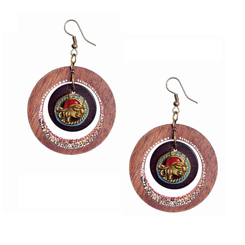 These handcrafted wooden loop earrings with a brass centerpiece are the perfect embodiment of minimalist chic. The sleek and simple design of the wooden loops is beautifully contrasted by the intricate brass centerpiece, creating a unique and eye-catching look.
