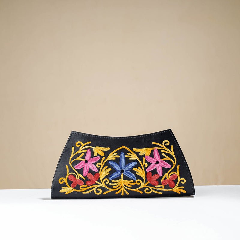 Original Chain Stitch Embroidery Leather Clutch