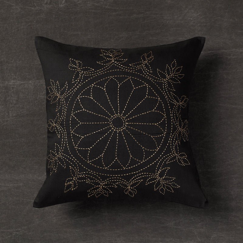 Padma – Kantha Embroidery Cotton Cushion Cover (16 x 16 in)