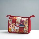 Fine quality quilted patchwork cosmetic or Toiletry bag made from cotton fabrics. It is designed with hand stitched contemporary patterns handmade by the women of Purkal Stree Shakti Samiti, Dehradun. It has three pockets with cotton fabric lining inside.