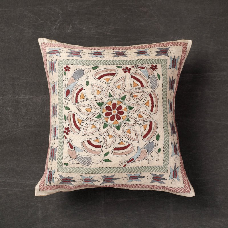 Padma - Kantha Embroidery Cotton Cushion Cover (16 x 16 in)