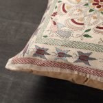 The cushion cover is handcrafted using Cotton. The meticulously hand-embroidered patterns are made by expert artisans of West Bengal using traditional Kantha embroidery technique. Customised designs and colors possible for a small batch production of 100 pieces. Product and material testing reports are available on request.