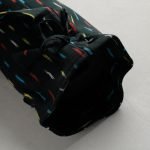 Pochampally ikat cotton quilted yoga mat bag with spill-proof plastic layer lining inside. It has one zipper pocket outside, a long strap for carrying ease. Customization in design, and fabric is possible.