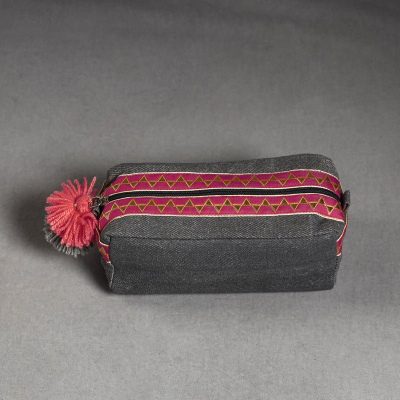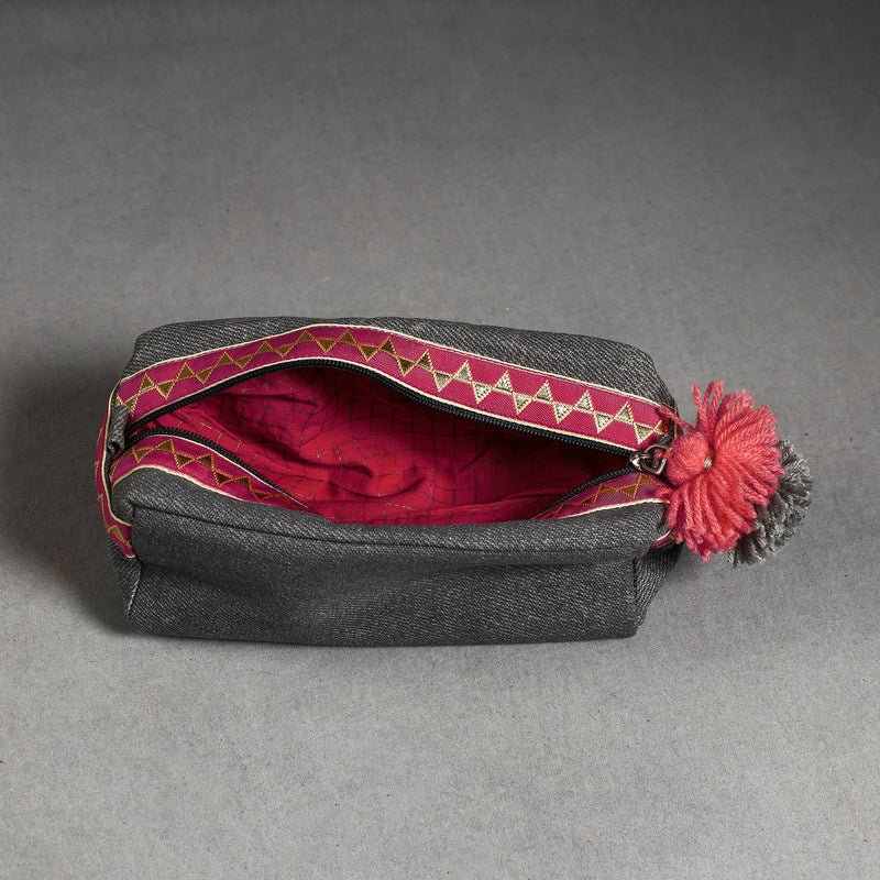 Handcrafted printed canvas cotton travel pouch/ Toiletry bag is made from durable canvas cotton, this travel pouch exudes elegance with its embroidered lace embellishment. Perfectly sized for Toiletryries or small essentials, this pouch is a versatile companion for travel, adding a touch of sophistication to your journey.