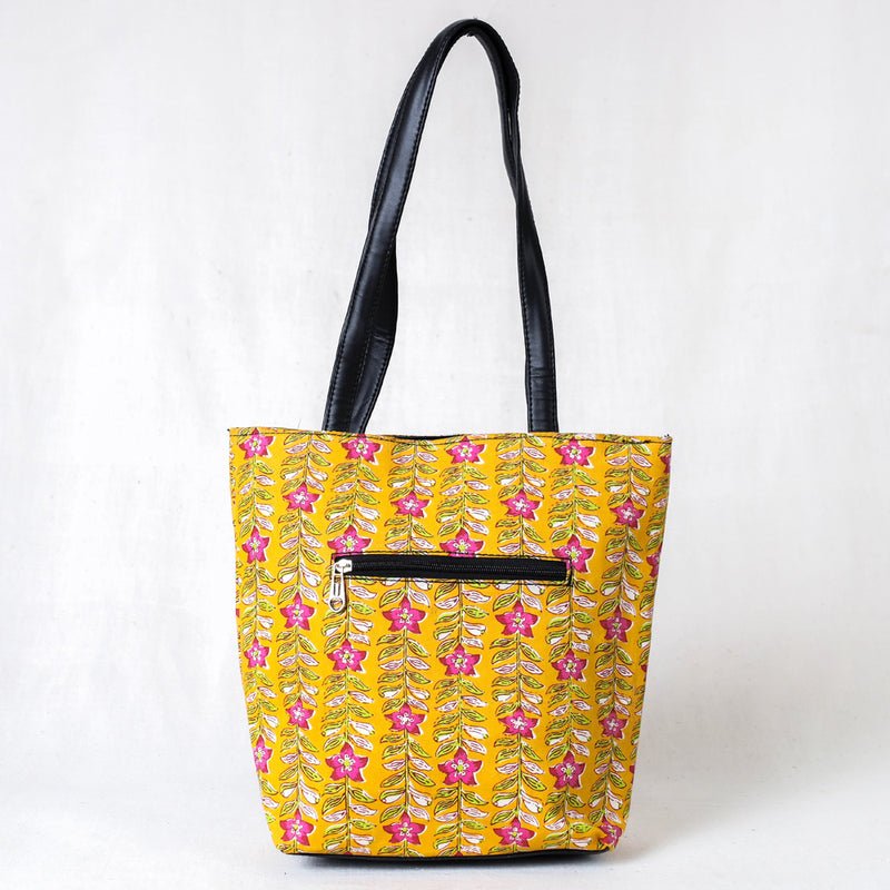 Handcrafted shoulder bag made from hand-block printed cotton fabric from marudhara, Barmer. It has one zipper pocket inside and one zipperand#39; pocket outside. Ample space to keep most of your essentials.