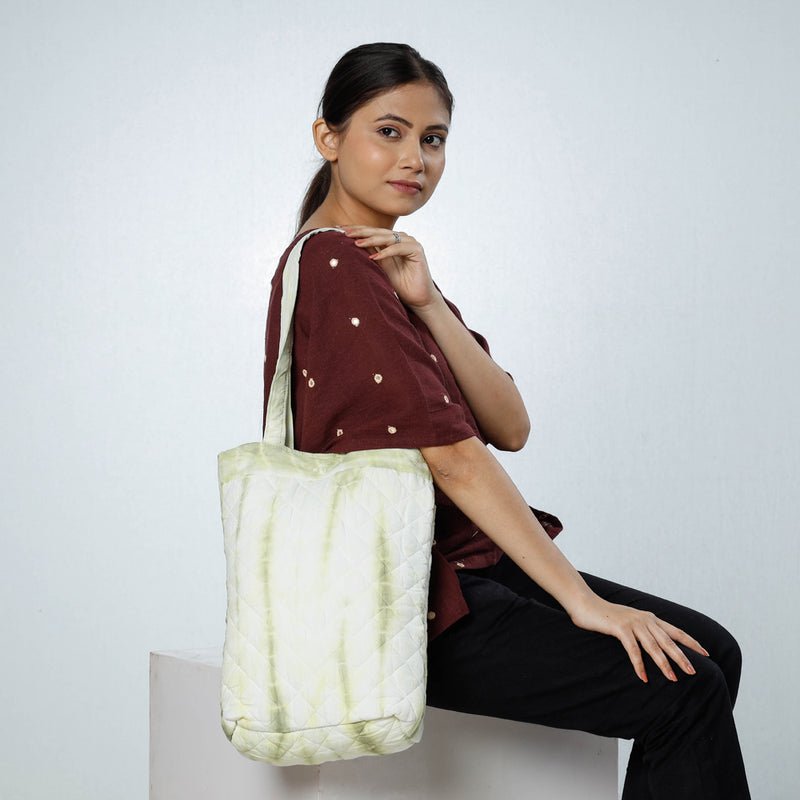 Fine quality handcrafted shibori tie dye cotton shoulder bag made from pure cotton fabric. It has ample space to keep most of your essentials. Hand dyed using shibori tie and dye technique in which the fabric is tied using clamp or stitches in the required design and the pattern is dyed.