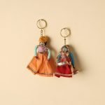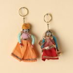 These handrafted Rajasthani puppet couple keychain are made from cotton fabric and adorned with intricate gota patti work. These miniature craft pieces are made by expert artisans from Rajasthan. Customised shapes and designs possible even for a small batch size of 100 units.