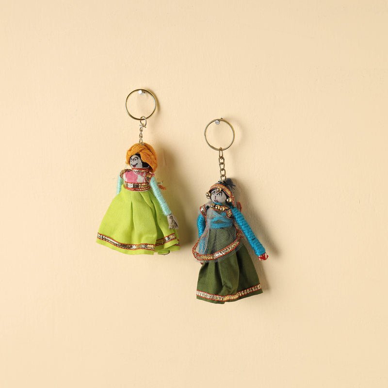These handrafted Rajasthani puppet couple keychain are made from cotton fabric and adorned with intricate gota patti work. These miniature craft pieces are made by expert artisans from Rajasthan. Customised shapes and designs possible even for a small batch size of 100 units.