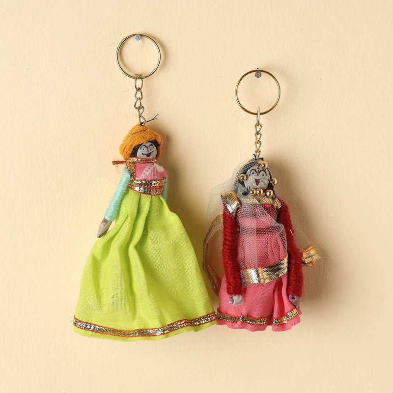 Home All Categories Stationery Keychains Rajasthani Puppet Couple Handmade Keychains (Set of 2)