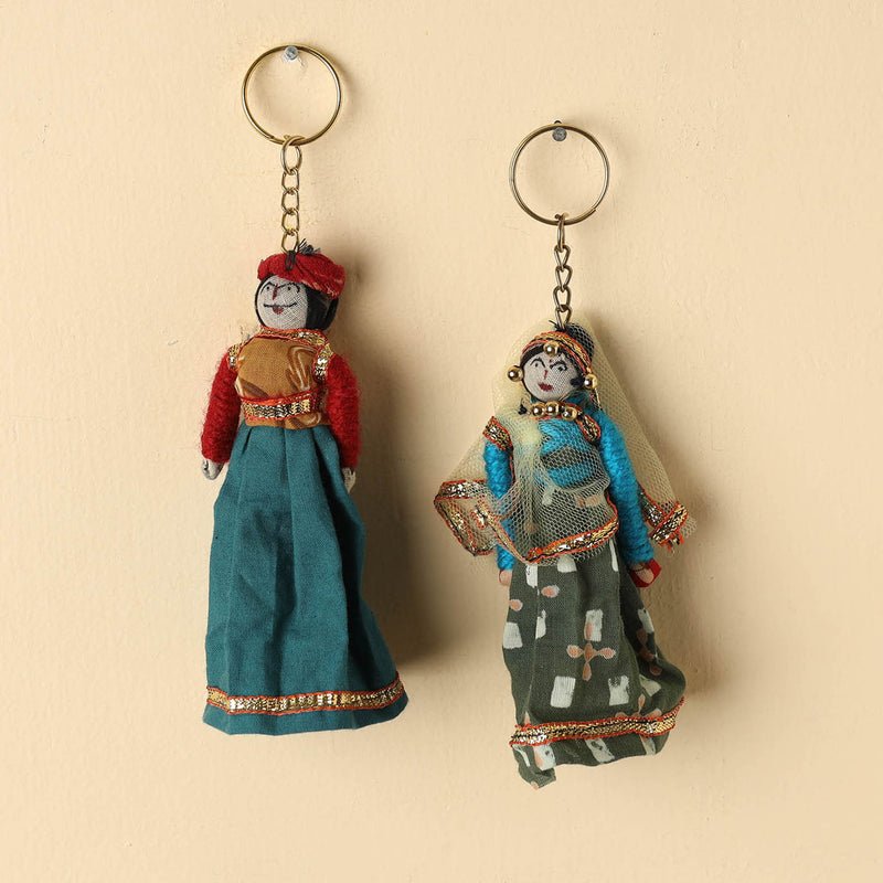 Rajasthani Puppet Couple Handmade Keychain (Set of 2)