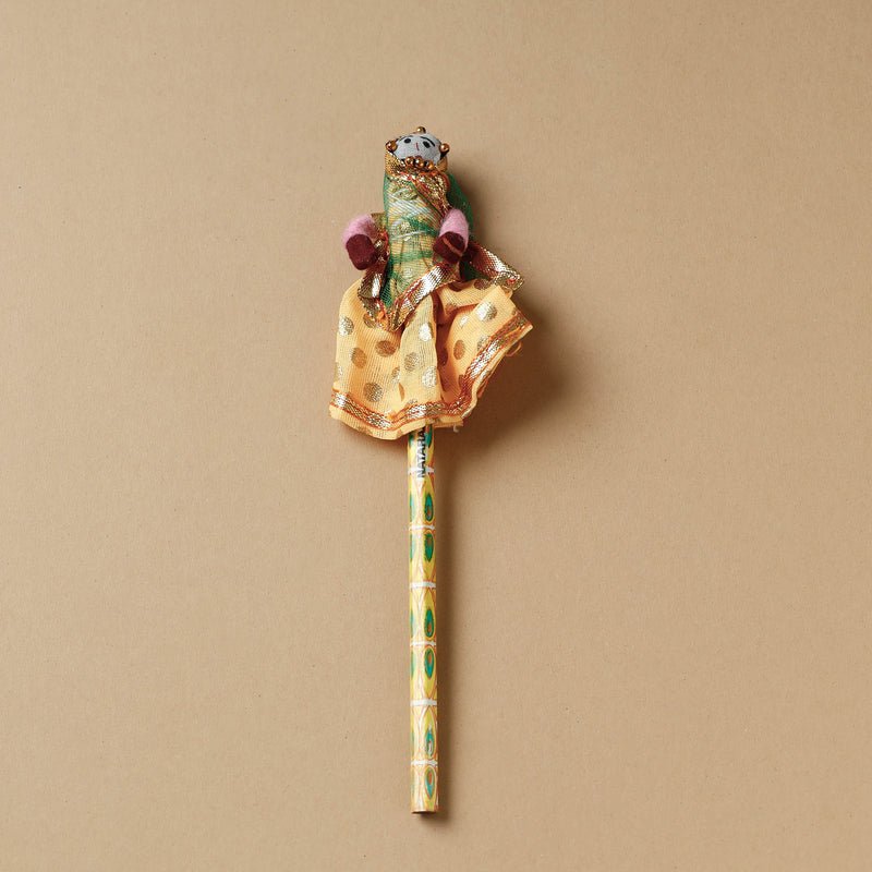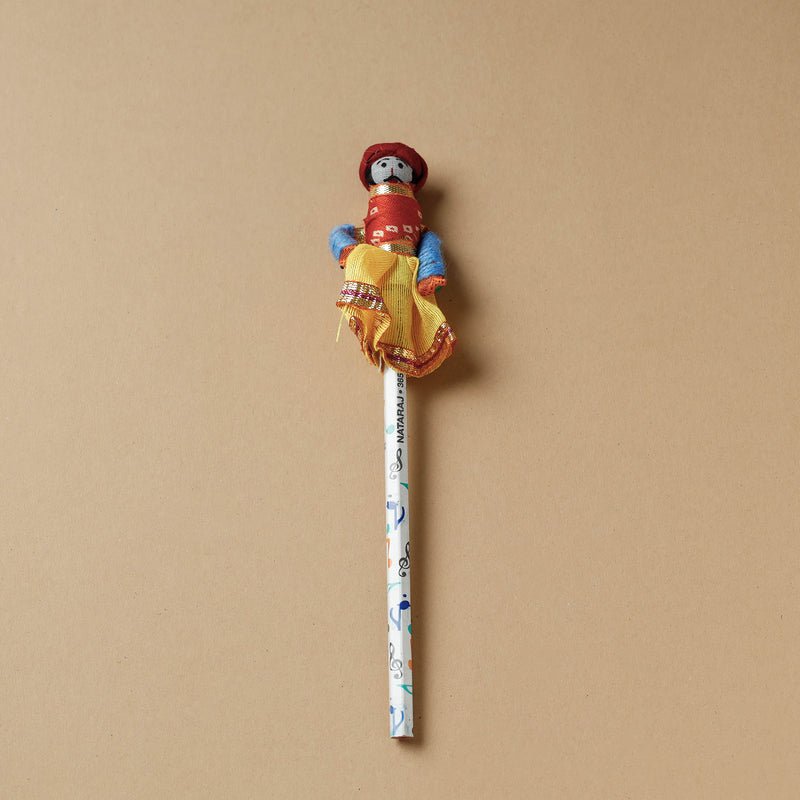 Handcrafted Rajasthani puppet wooden pencils. The pencil tops are crafted from cotton fabric and adorned with exquisite gota patti work. Excellent gifting idea, birthday idea.