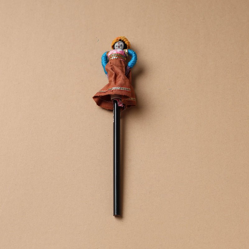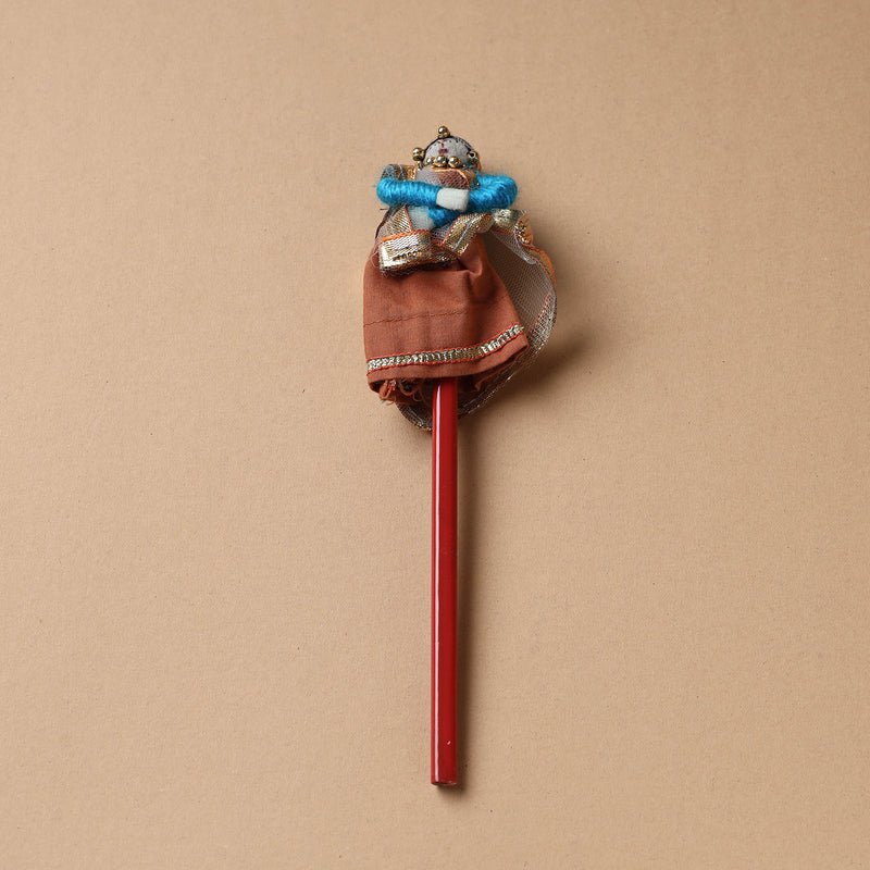 Handcrafted Rajasthani puppet wooden pencils. The pencil tops are crafted from cotton fabric and adorned with exquisite gota patti work. Excellent gifting idea, birthday idea.