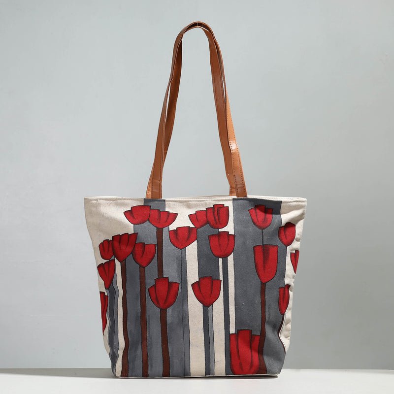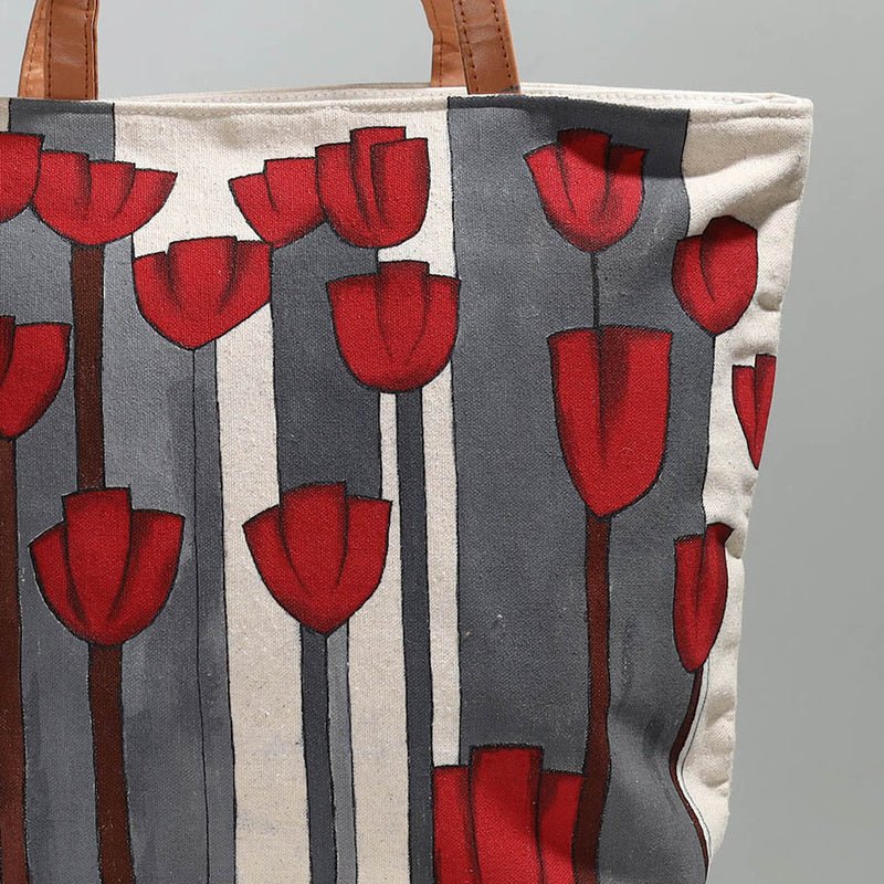 Red Flower – Hand-painted Canvas Cotton Shoulder Bag