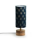 The lamp is made from a high quality hard wood. Top top is made of Jute, Linen, Cmabirc cotton wrapped over Polyvinyl. Bulb holder Type is B22. Comes with 2 pin plug. Comes with an On/Off switch. Wire Length is 1.6 meters. Various shapes, sizes and designs are possible for a small batch production of 100 pieces. Existing designs are available for a minimum quantity of 24 pieces.
