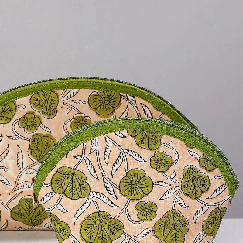 Home All Categories Fashion Accessory Pouches Sanganeri Block Printing Cotton Toiletry Bags (Set of 3)