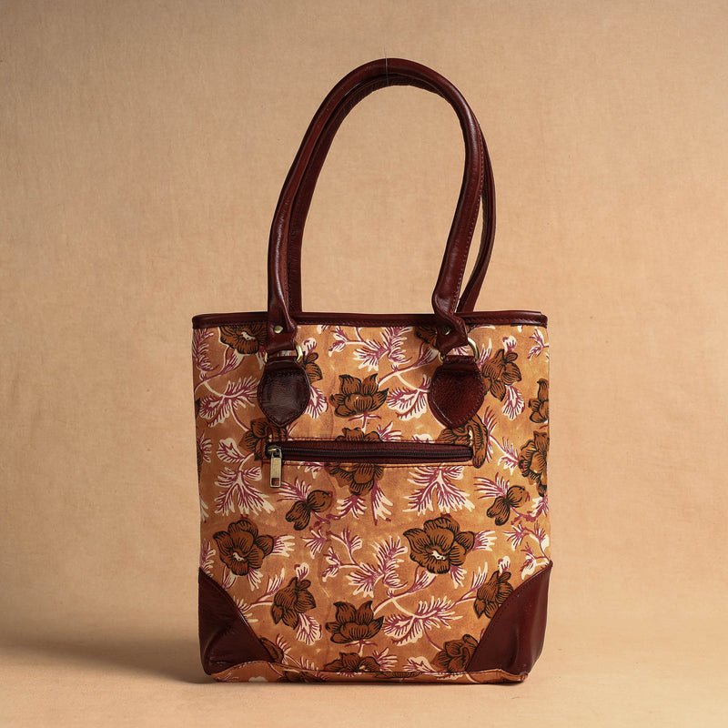This exquisite sanganeri printed leather shoulder bag is a true testament to artistry and craftsmanship. Handcrafted by skilled craftswomen in Kolkata, West Bengal, this bag showcases the timeless beauty of sanganeri block printed cotton fabric fused with leather. It offers ample space to accommodate most of your essentials. With one convenient zipper pocket inside and another outside, this bag effortlessly combines functionality with fashion.
