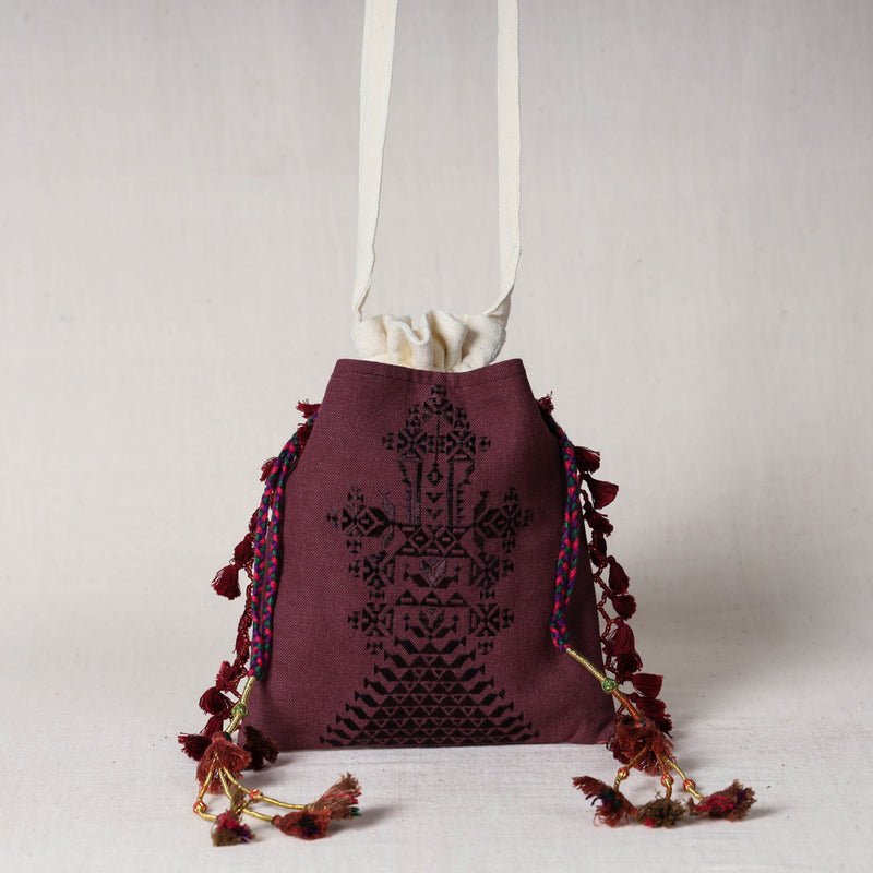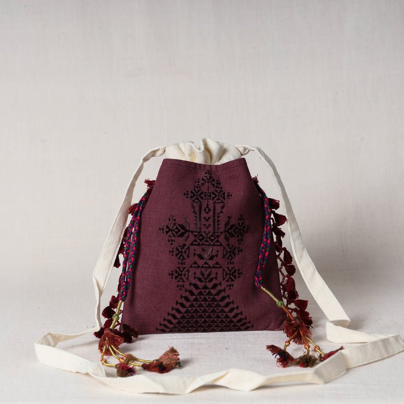 Soof Stitch Embroidery Pure Handloom Cotton Sling Potli Bag