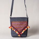 Fine quality soof stitch embroidery pure handloom sling bag. Soof embroidery is also done by the Sodha, Rajput and Megwar communities. It is a counted thread styles using only one stitch also called soof.The designs are highly geometric. Any representational motifs are stylized. The surface stitch is worked from the back of the fabric by counting the weave of the fabric and inserting the needle of regular and designed intervals. The designs for Soof embroidery cannot be pre drawn and are left to the discretion of the individual craftswomen, who need a good grasp of a geometry to work out their designs.