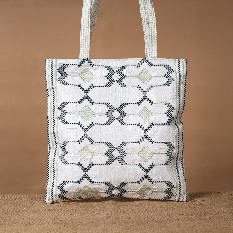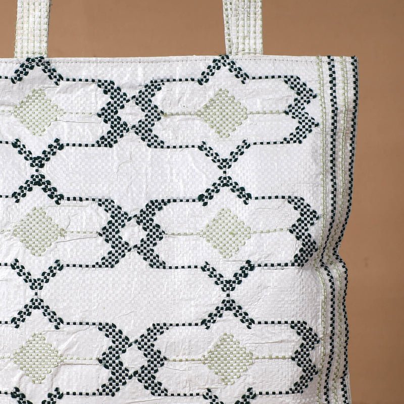Handcrafted shoulder bag made from Taat (upcycled plastic) with intricate wool thread embroidery made by rural artisans of Hardoi district, Uttar Pradesh. It has one zipper pocket inside. It has ample space to keep most of your essentials.
