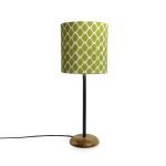 The lamp is made from a high quality hard wood. Top top is made of Jute, Linen, Cmabirc cotton wrapped over Polyvinyl. Bulb holder Type is B22. Comes with 2 pin plug. Comes with an On/Off switch. Wire Length is 1.6 meters. Various shapes, sizes and designs are possible for a small batch production of 100 pieces. Existing designs are available for a minimum quantity of 24 pieces.