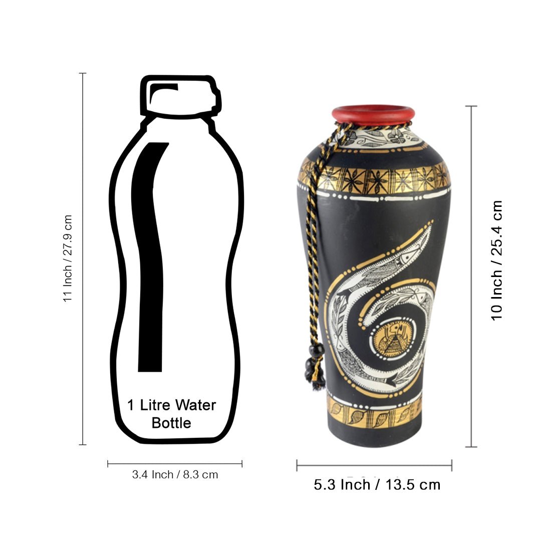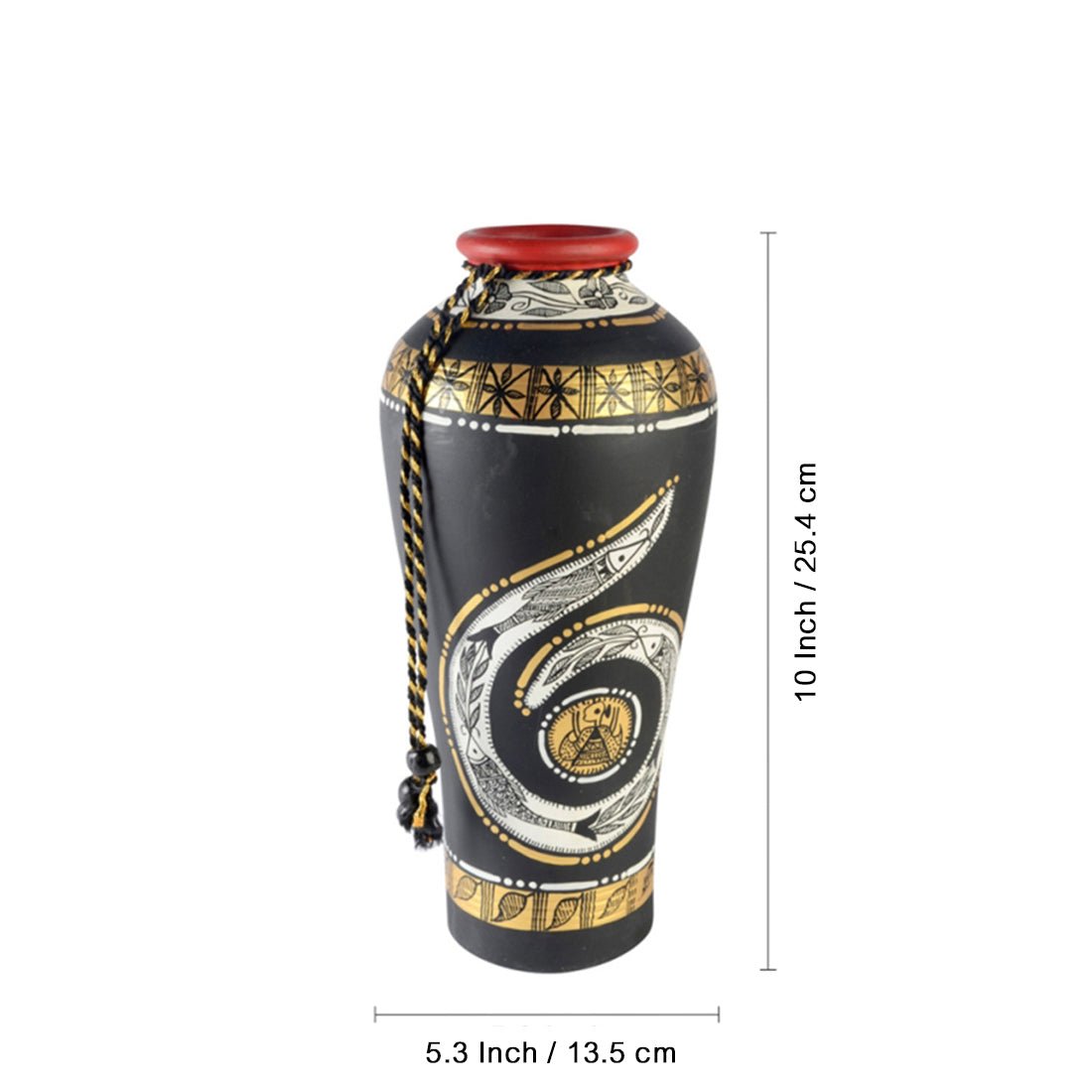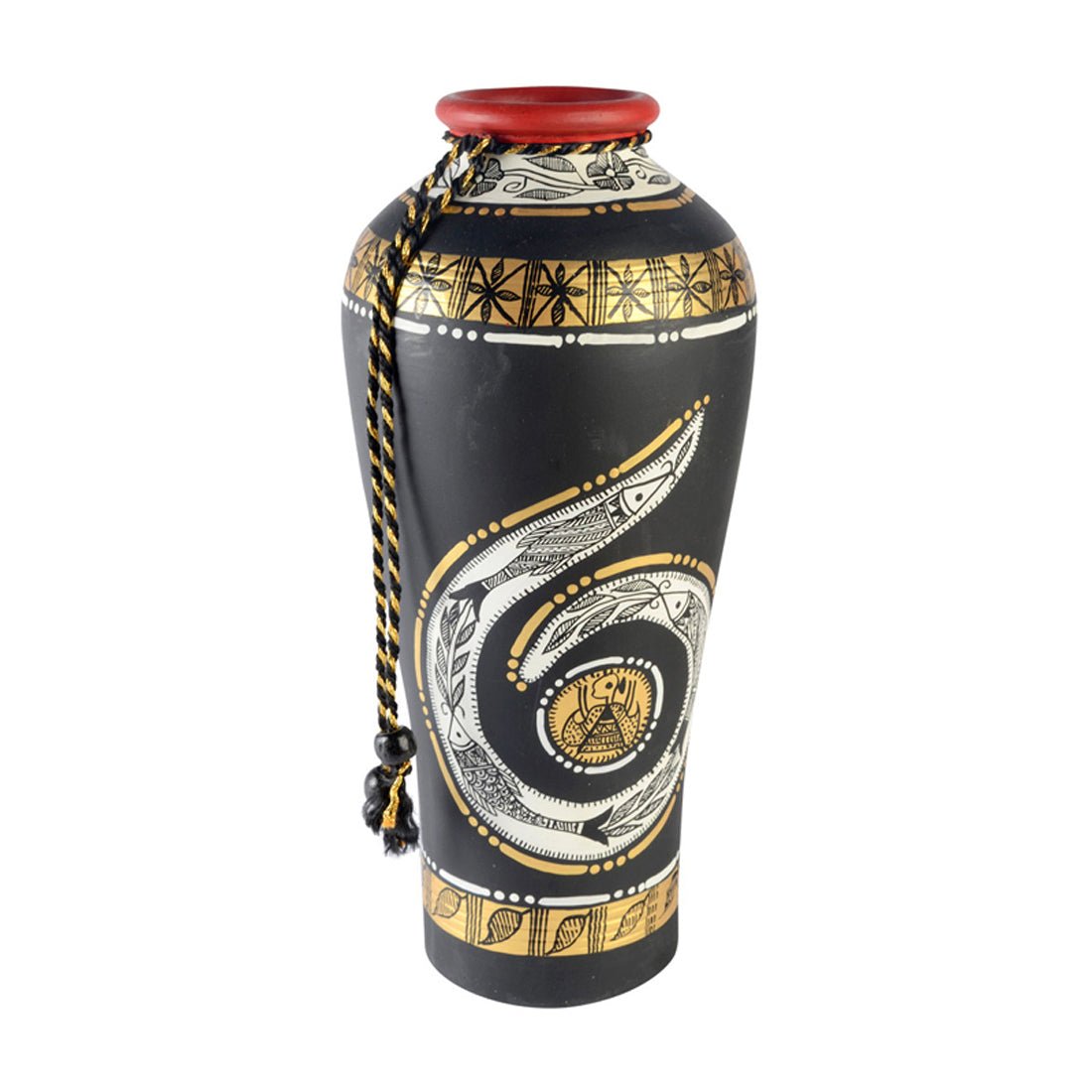 Terracotta Handpainted Madhubani Vase Round Black 10 Inch